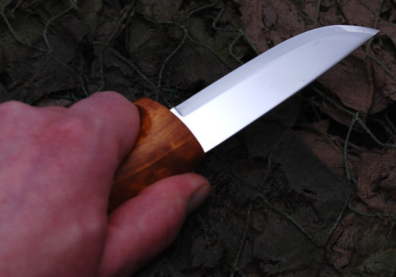 Nóż jest dobrze wyprofilowany i nadaje się do wszystkich zastosowań. Ostrze wykonane jest z potrójnej laminowanej stali nierdzewnej. Nóż wyposażony jest w pokrowiec skórzany typu snap.