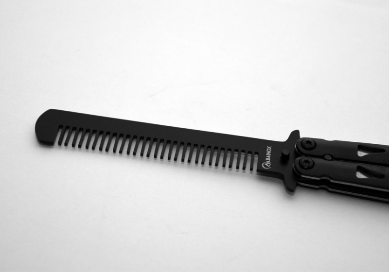 Teraz możesz doskonalić swoje umiejętności posługiwania się motylkiem, ćwicząc triki całkowicie bezpiecznym narzędziem z tępą głownią. Produkt wykonany został przez hiszpańską firmę Martinez Albainoź specjalizującą się min. w produkcji popularnych "balisongów". Ostrze noża zastąpione zostało grzebieniem, dzięki czemu jest bardzo bezpiczne... a zarazem przydatne.