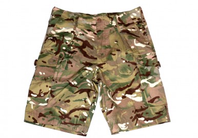 Krótkie spodenki kontraktowe w kamuflażu MTP używane przez wojska brytyjskie.