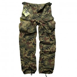 Spodnie SFU (Special Forces Uniform) wyprodukowane są przez firmę CAMO M.G. Bojówki wykonane z bawełny w splocie rip-stop gwarantrują ogromną wytrzymałość spodni. SFU to nowoczesny, komfortowy i bardzo praktyczny wzór umundurowania. Krój przeznaczony dla sił specjalnych, jednak dzięki bardzo wysokiej użyteczności i wygodzie nie krępującej ruchów przyjął się do noszenia na co dzień zyskując rzesze zwolenników. Na pośladkach i kolanach zastosowano wzmocnienia dodatkową warstwą materiału. Obszycia kolan stanowią kieszenie na miękkie ochraniacze.