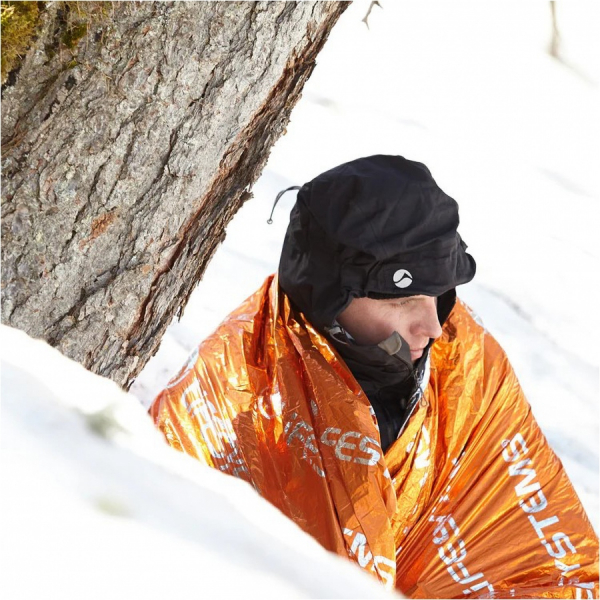 Po wejściu do środka materiał odbija i zatrzymuje ponad 90% ciepła, tworząc barierę przed wiatrem, wilgocią i zimnem. Sprawdza się podczas wypadków w terenie, nagłego załamania pogody oraz długiego oczekiwania na pomoc.