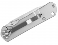 Bezpieczeństwo użytkowania gwarantuje niezawodna blokada typu frame-lock. Łatwość otwierania zapewnia obustronny kołek umieszczony po obu stronach głowni, umożliwiający otwarcie noża jedną ręką, zarówno prawo jak i leworęcznym osobom. Codzienne wygodne noszenie zapewnia sprężysty, stalowy klips umożliwiający wygodne przymocowanie noża do paska lub do krawędzi kieszeni.