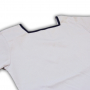 Charakterystyczny krój z krótkim rękawem i granatową lamówką