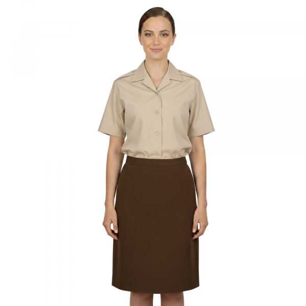 Brytyjska koszula wojskowa damska FAWN z krótkim rękawem to oryginalny element kobiecego umundurowania Armii Brytyjskiej – model Shirt, Woman’s, Fawn, Short Sleeve, Army Blouse.