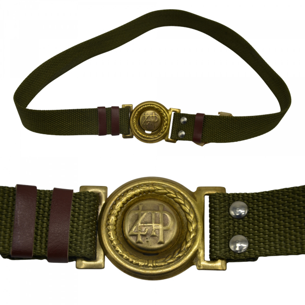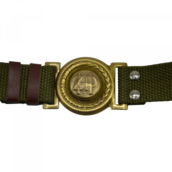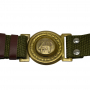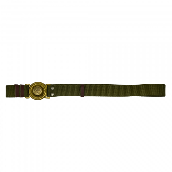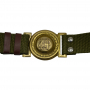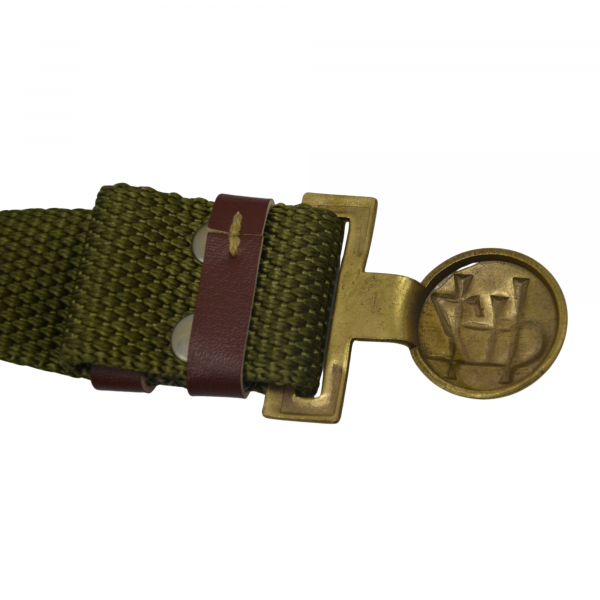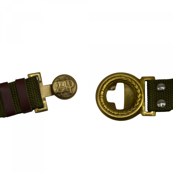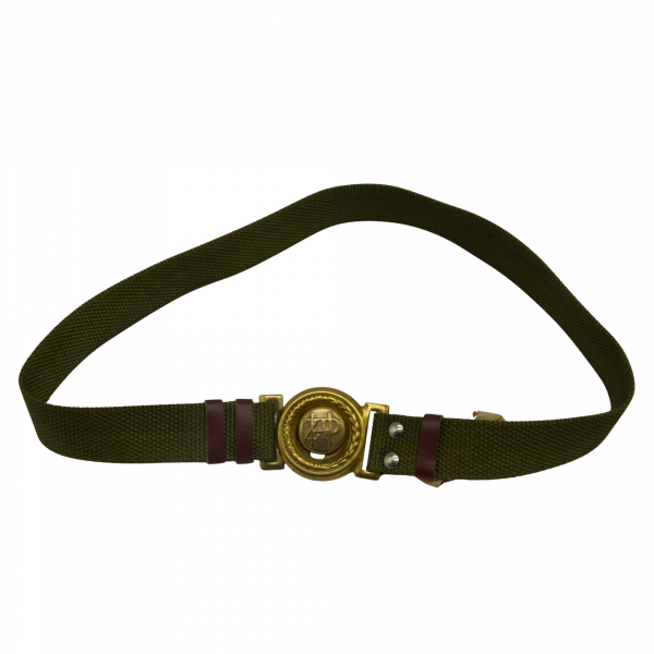 Oryginalny pas Związku Harcerstwa Polskiego, wyprodukowany w 1988 roku. W przeciwieństwie do standardowych modeli, ten egzemplarz posiada ozdobną klamrę z tłoczonym monogramem „ZHP” w wieńcu laurowym.
