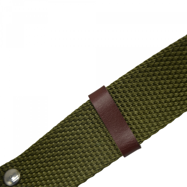 Taśma: Solidna, parciana plecionka w kolorze oliwkowym, odporna na intensywne użytkowanie.