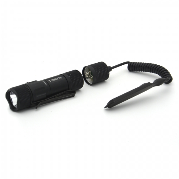 Ważąca zaledwie 52g (bez baterii), kompaktowa latarka taktyczna T-Force VR dysponuje maksymalnym strumieniem świetlnym 1000lm oraz skutecznym zasięgiem do 200m. Dzięki swoim kompaktowym gabarytom latarka doskonale sprawdzi się do współpracy z osobistymi środkami obrony czy też jako element wyposażenia EDC. T-Force VR zasilana jest przez akumulator RCR123, z wbudowanym gniazdem microUSB, bądź opcjonalnie za pomocą baterii CR123A. Wraz z latarką otrzymujemy kolorowe filtry (RGB), montaż na na szynę picatinny, włącznik żelowy, akumulator oraz kabel USB.