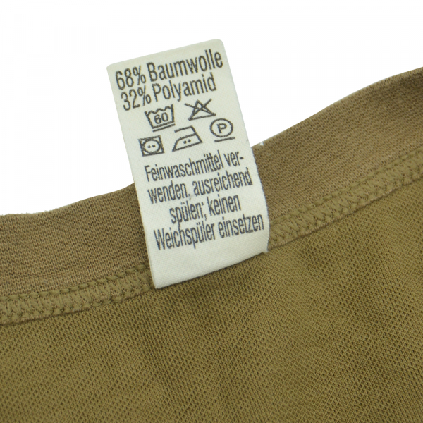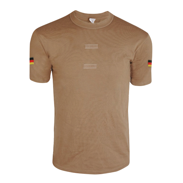 Oryginalna koszulka pochodząca z zasobów Armii Niemieckiej - Bundeswehr. Wykonana z wysokiej jakości materiału o składzie 68% bawełna, 32% poliamid. Koszulka jest elastyczna, dzięki czemu doskonale dopasuje się do naszego ciała. Na obu rękawach znajdują się flagi Niemiec. Z przodu znajduje się podwójny rzep, wystepują również modele z pojedynczym a nawet bez. Prosimy mieć to na uwadze.