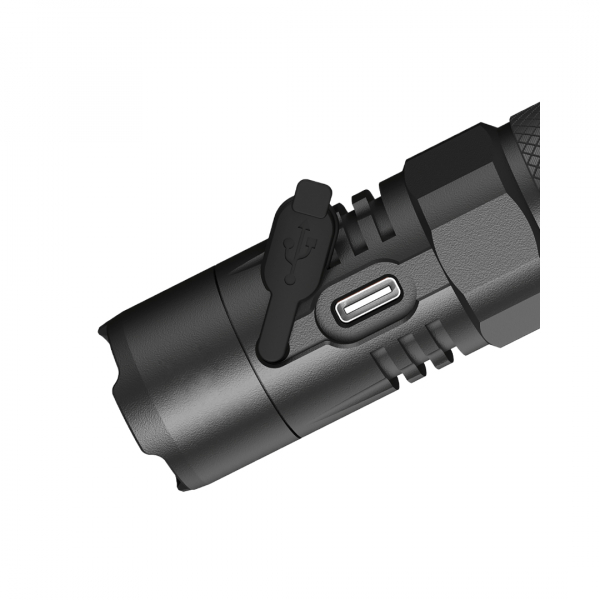 Trwały metalowy włącznik boczny jest bardzo wygodny nawet przy użytkowaniu latarki w rękawiczkach. W zestawie załączono taktyczną kaburę NTH10, która została zaprojektowana dla organów ścigania. Jest kompatkowa, elastyczna i umożliwia szybkie wyciągnięcie latarki.