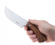 Drewniane okładziny z wyraźnym rysunkiem słojów – dobrze leżą w dłoni i nie wychładzają jej w niskich temperaturach. Naturalny rysunek słojów nadaje nożowi bardziej klasyczny, terenowy charakter.