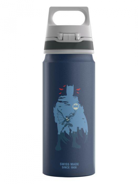 Butelka SIGG z licencjonowanej serii z motywem z Batman'a. Jest lekka, trwała, solidna, praktyczna i ekologiczna. Nieodzowna w szkole, na spacerze lub wycieczce. Wykonano ją z jednego kawałka metalu, który w całości można poddać recyklingowi. Innowacyjny korek WMB One został opracowany tak, aby użytkowanie było jak najprostsze. Jego unikatowa budowa sprawia, że butelka nie przecieka. Szeroki otwór butelki ułatwia napełnianie i utrzymanie jej w czystości. Butelkę można w łatwy sposób obsługiwać jedną ręką.