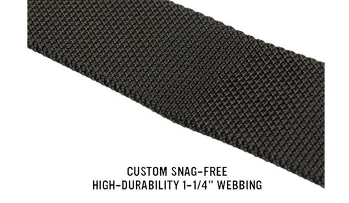 Taśma o szerokości 1,25 cala oraz wytrzymałe komponenty pokryte Melonite™ gwarantują odporność na intensywne użytkowanie, tarcie i warunki terenowe. Zredukowana emisja podczerwieni sprawia, że to zawieszenie sprawdza się także w wymagających zastosowaniach taktycznych. Produkt jest w 100% zgodny z Berry Amendment i został wyprodukowany w USA.