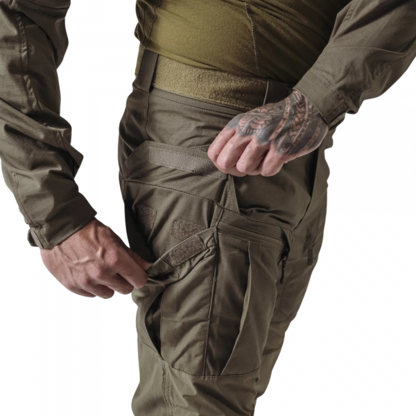 Spodnie wykonano z kontraktowej tkaniny NYCO Ripstop (50% nylon / 50% bawełna) o gramaturze 220 g/m², zapewniającej równowagę między odpornością na uszkodzenia a oddychalnością. Strefę kolan wzmocniono Cordurą® 500D, która pełni również funkcję kieszeni na opcjonalne wkładki ochronne.