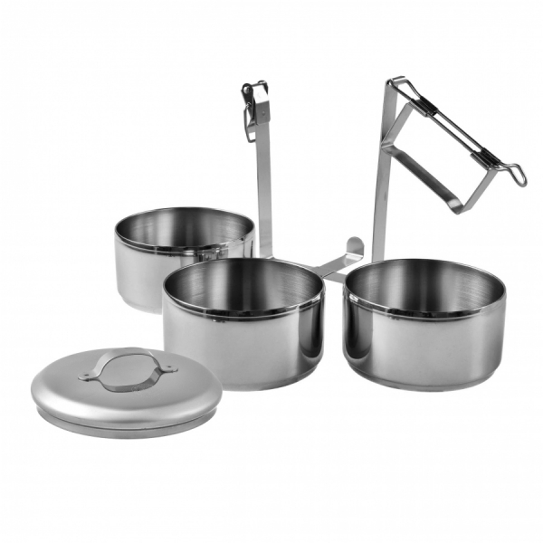 Menażka Food Carrier składa się z trzech garnuszków o identycznych rozmiarach oraz pokrywki. Wszystko wykonane z wysokiej klasy stali nierdzewnej 304, wytrzymałej i odpornej na korozję. Garnuszki są połączone specjalnym uchwytem, który zapewnia zestawi stabilność i ułatwia jego transport. Food Carrier to rozwiązanie uniwersalne, doskonale nadające się do transportowania, przechowywania, przygotowywania, gotowania oraz serwowania posiłków. Dzięki zastosowaniu stali nierdzewnej garnuszki są łatwe w czyszczeniu i nie wchłaniają zapachów. Potrójne dno zapewnia równomierne rozprowadzanie ciepła.