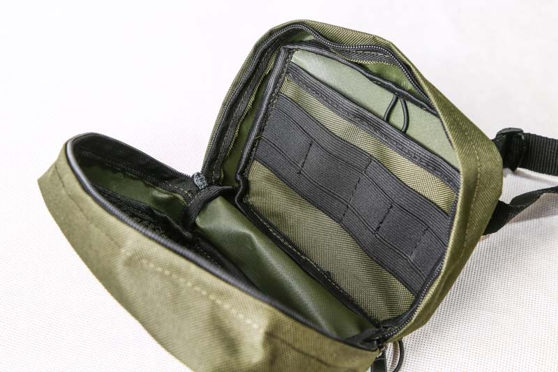 Duża i pojemna nerka EDC przeznaczona do transportowania codziennych drobiazgów zarówno w przestrzeni miejskiej jak i w terenie. Wykonana z mocnej i odpornej „polskiej cordury”, czyli poliestrowej tkaniny kaletniczej 600D/300D powlekanej PVC zapewniającej wodoodporność i niezwykłą wytrzymałość. Umieszczony wewnątrz system uchwytów i kilka kieszeni dają możliwość zachowania ładu i porządku w transportowanym sprzęcie.