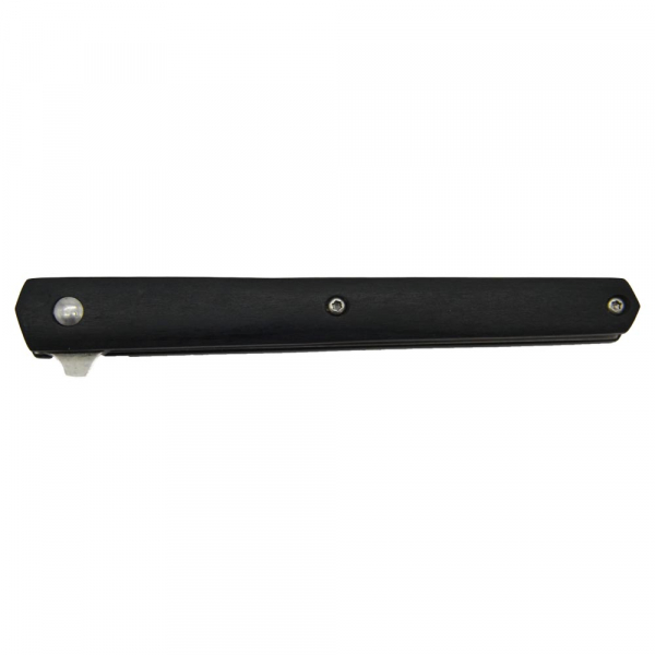 Bardzo smukły nóż składany firmy Martinez Albainox. Ostrze wykonane jest ze stali nierdzewnej 3Cr13Mov. Nóż łatwo otwiera się jedną ręką poprzez naciśnięcie flippera. Rękojeść wykonana jest ze stalowych wstawek, na których znajdują się uchwyty z ciemnego drewna. Do noża dołączone jest skórzane etui.