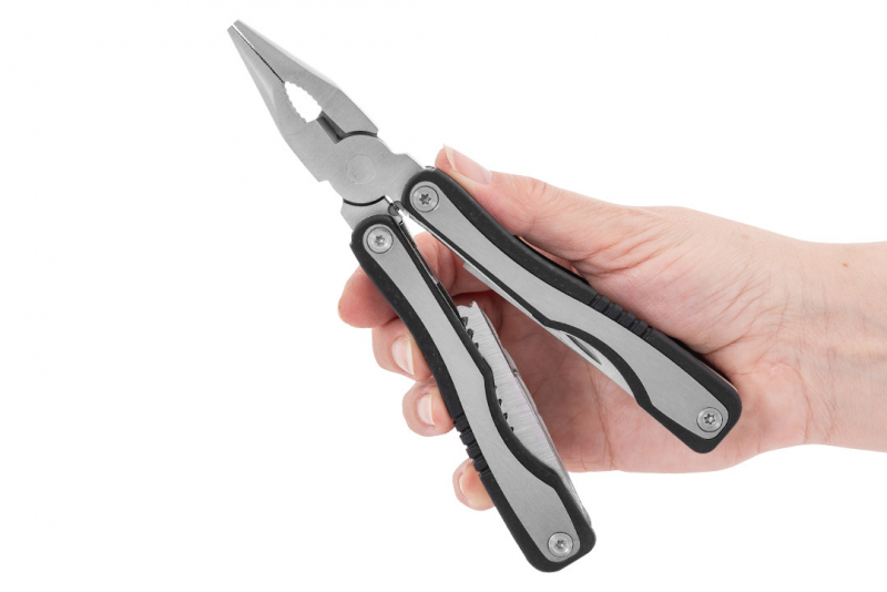 Ten wszechstronny gadżet to idealne narzędzie dla każdego majsterkowicza, łączące funkcjonalność z estetyką. Skrywa w sobie aż 15 narzędzi, które sprawdzą się w wielu codziennych zadaniach, od drobnych napraw po bardziej wymagające prace. Wykonany ze stali nierdzewnej 420 multitool jest odporny na uszkodzenia i korozję, co zapewnia jego długowieczność. Srebrna powierzchnia w połączeniu z czarnymi akcentami nadaje mu nowoczesny, atrakcyjny wygląd. Ergonomicznie zaprojektowana rękojeść, wykonana z wytrzymałego metalu, zapewnia pewny i komfortowy chwyt podczas pracy. Konstrukcja multitoola w formie kombinerek, z chowanymi narzędziami sprawia, że jest on niezwykle kompaktowy i łatwy w użyciu. Jego optymalny rozmiar umożliwia wygodne przechowywanie w kieszeni, a dołączone etui z cordury pozwala na przypięcie multitoola do paska. To niezastąpione narzędzie, które z pewnością sprosta oczekiwaniom każdego mężczyzny, łącząc trwałość, funkcjonalność i nowoczesny design.