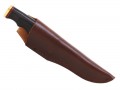 Mocny, wygodny i przystępny cenowo nóż ogólnego użytku. Sprawnie poradzi sobie w wielu różnych sytuacjach. Rękojeść wykonana ze stabilizowanego drewna, posiada profilowane wycięcia, które podnoszą ergonomię pracy. Klinga wykonana ze stali 440. W komplecie skórzana pochwa.