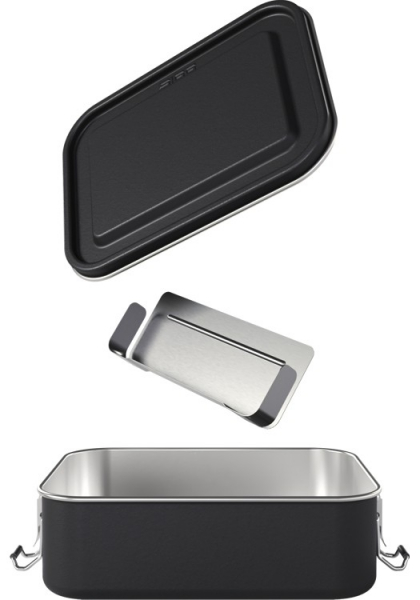 Pojemnik na żywność firmy SIGG. Wykonany ze stali nierdzewnej 18/8. Kabłąkowe zamknięcie i uszczelka pod pokrywką gwarantują łatwość otwierania/zamykania i szczelność. Regulowana stalowa przegródka ułatwia organizację zawartości. Praktyczny jako pudełko na kanapki, na piknik lub np: na przedmioty codziennego użytku. Do produkcji pudełka wykorzystano materiały wysokiej jakości.