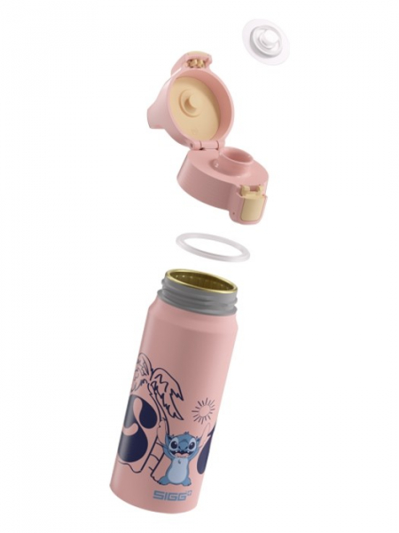 Butelka SIGG z licencjonowanej serii Disney'a z motywem z One Stitch. Jest lekka, trwała, solidna, praktyczna i ekologiczna. Wykonano ją z jednego kawałka metalu, który w całości można poddać recyklingowi. Innowacyjny korek WMB One Top 2 został opracowany tak, aby użytkowanie było jak najprostsze. Jego unikatowa budowa sprawia, że butelka nie przecieka. Szeroki otwór butelki ułatwia napełnianie i utrzymanie jej w czystości. Butelkę można w łatwy sposób obsługiwać jedną ręką.