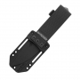 W komplecie znajduje się pochwa Celcon® - lekka, sztywna i odporna na ekstremalne temperatury oraz uszkodzenia. Nóż osadzony jest w niej na wcisk, a dodatkowy zatrzask stalowy zwiększa bezpieczeństwo. System montażowy umożliwia przełożenie pochwy na lewą lub prawą stronę.