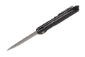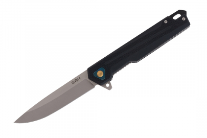 Elegancki nóż sprężynowy od marki BSH ADVENTURE. Nóż N-072A w kolorze czarnym to doskonałe narzędzie EDC do codziennych czynności, będzie świetnie prezentował się w każdych okolicznościach. Głownia o smukłym profilu typu drop point została wykonana z wysokojakościowej stali nierdzewnej 420, pokrytej dodatkowo powłoką ochronną w kolorze szarym. Smukła, wygodna rękojeść doskonale leży w dłoni i zapewnia mocny, pewny uchwyt. Jest wykonana z ergonomicznego tworzywa w czarnym kolorze i ozdobiona złotym nitem. Nóż sprężynowy otwiera się za pomocą wspomaganego flippera, który zapewnia łatwe i bezproblemowe otwarcie noża. Proces otwarcia przebiega błyskawicznie i niezwykle płynnie. Nóż posiada blokadę liner lock, która skutecznie zabezpiecza ostrze przed niepożądanym zamknięciem. Dodatkowo nożyk BSH ADVENTURE posiada metalowy klips, który umożliwia przyczepienie do paska spodni.
