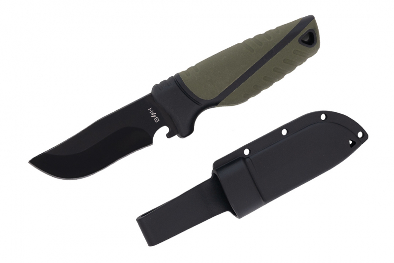 Poręczny nóż turystyczny, który doskonale sprawdzi się podczas wszelkiego rodzaju wypraw. Staranna jakość wykonania oraz zastosowanie solidnych materiałów gwarantują jego trwałość i niezawodną pracę. Będzie idealnym narzędziem do przygotowywania posiłków w terenie, wykonywania różnorodnych czynności obozowych, a także świetnie poradzi sobie w warunkach survivalowych i podczas bushcraftu. Ostrze o klasycznym profilu straight back wykonano z wysokiej klasy stali nierdzewnej 440. Stal ta cechuje się dużą odpornością, a dodatkowa czarna powłoka ochronna eliminuje odblaski i dodatkowo zwiększa właściwości antykorozyjne. Rewelacyjnym dodatkiem na każdy biwak jest otwieracz do kapsli znajdujący się na początku ostrza. Ergonomiczna rękojeść powstała z wytrzymałego tworzywa z gumowanymi wstawkami, co zapewnia pewny chwyt i doskonałe właściwości antypoślizgowe. Nóż myśliwski BSH ADVENTURE wyposażono w solidny pokrowiec z mocnego tworzywa, który można wygodnie przypiąć do paska. To znakomity element ekwipunku na każdą przygodę!