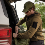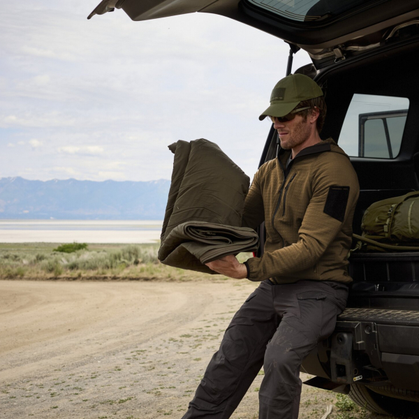 Idziesz z plecakiem przez otwarty teren. Raz strome podejście, raz postój na sprawdzenie mapy. To właśnie w takich warunkach, typowych dla linii Outback, Patriot Pro pokazuje swoją przewagę jako inteligentna warstwa przejściowa. Temperatura krąży w zakresie 10–18°C, a porywisty wiatr próbuje wyciągnąć ciepło spod bluzy. Materiał pracuje z Twoim ruchem — grzeje tam, gdzie trzeba, i oddycha wtedy, gdy tempo rośnie. To odzież techniczna Helikon-Tex stworzona do realnego marszu, a nie statycznego stania przy ognisku.