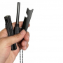 W zestawie znajduje się blaszka do krzesania z wbudowaną linijką oraz otwieraczem do kapsli. Dodatkowy kompas zwiększa funkcjonalność kompletu podczas wypraw terenowych.