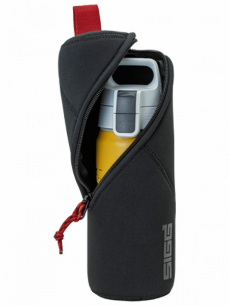 Pokrowiec na butelkę od szwajcarskiej marki SIGG — zaprojektowany, by pasować do większych butelek. Chroni je przed zarysowaniami, uderzeniami i zabrudzeniem podczas transportu.