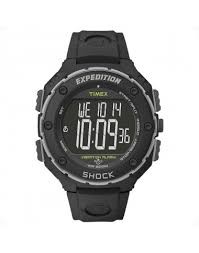 Naręczny, klasyczny zegarek wyprawowy Expedition Shock XL Vibrating Alarm firmy Timex z kolekcji Expedition. Ten wstrząsoodporny zegarek outdoorowy ma wszystkie argumenty, by idealnie znosić trudy codziennego użytkowania. Wyposażony jest w chronograf, timer oraz wibrujący alarm.