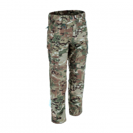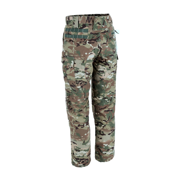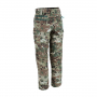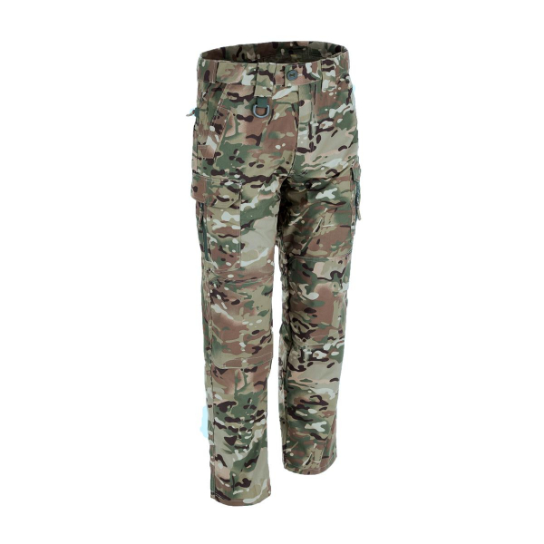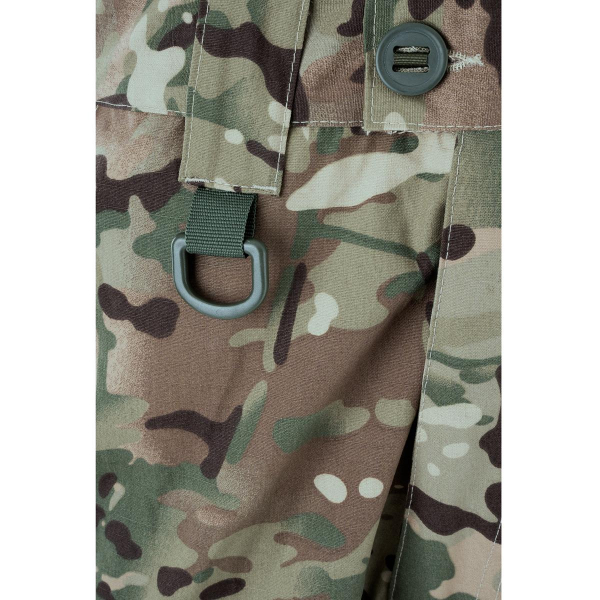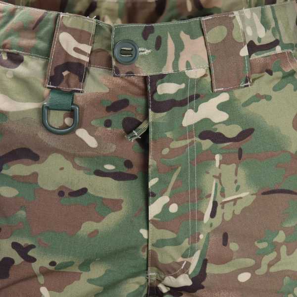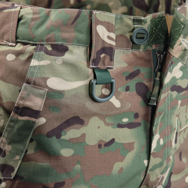 Krój spodni jest dopasowany, ale wygodny. W pasie wszyto gumy regulacyjne, które automatycznie dostosowują obwód do ruchu i warstw odzieży, a szerokie szlufki współpracują z pasami taktycznymi. Spodnie zapinane są na rzep, guzik kanadyjski i zamek błyskawiczny YKK, co daje pewne i trwałe zapięcie. D-Ring z przodu pozwala doczepić smycz, klucze lub karabińczyk.