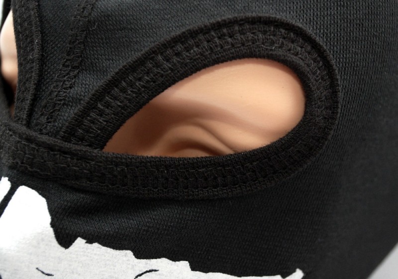 Otwór na oczy i dół kominiarki obszyty jest lamówką o szerokości 10 mm.