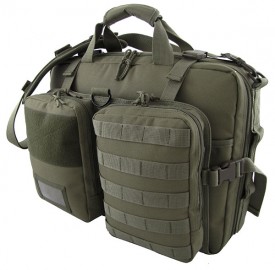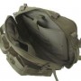 Dwie kieszenie na froncie z czego jedna obszyta 5 rzędami taśm montażowych Molle a druga z naszytym rzepem velcro + okienko identyfikacyjne. Kieszenie frontowe naszyte na otwieraną klapę utrzymywaną przy tornie za pomocą 4 klamer.