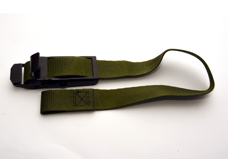 Jest to kontraktowa i oryginalna, regulowana taśma mocująco napinająca Armii amerykańskiej. Taśmy tego typu mają wiele zastosowań ze względu na swoją wszechstronność, głównie służą do montowania i utrzymywania na miejscu bagażu podczas transportu. Taśma wykonana jest z bardzo wytrzymałego nylonu o długości 54cm zakończonego z jednej strony pętlą (przez którą można przełożyć karabińczyk lub sznurek) a z drugiej strony przeszyciem które zabezpiecza taśmę przed wysunięciem się z klamry. Drugą częścią taśmy mocującej jest mocna metalowa klamra która blokuje w pozycji zamkniętej taśmę i zapobiega jej rozsuwaniu się oraz napina ją. Klamra posiada specjalnie wyprofilowany hak który służy do zaczepiania całej taśmy w punktach mocujących.